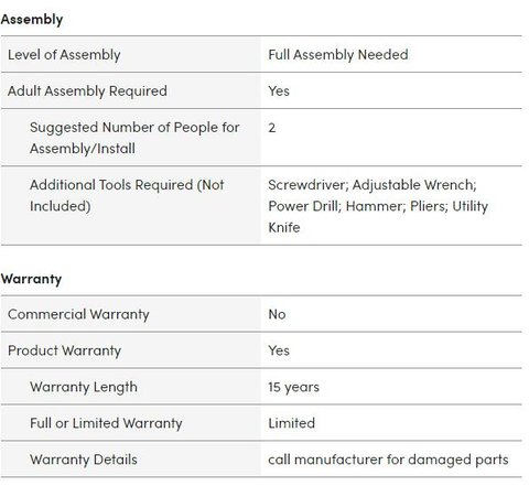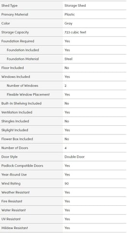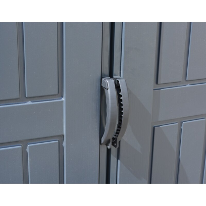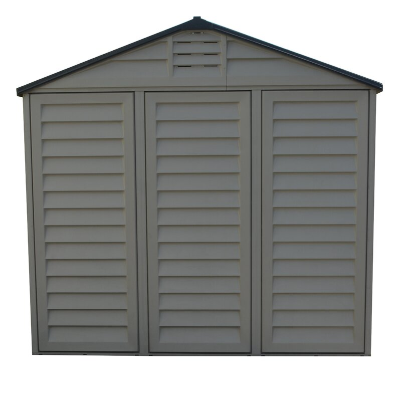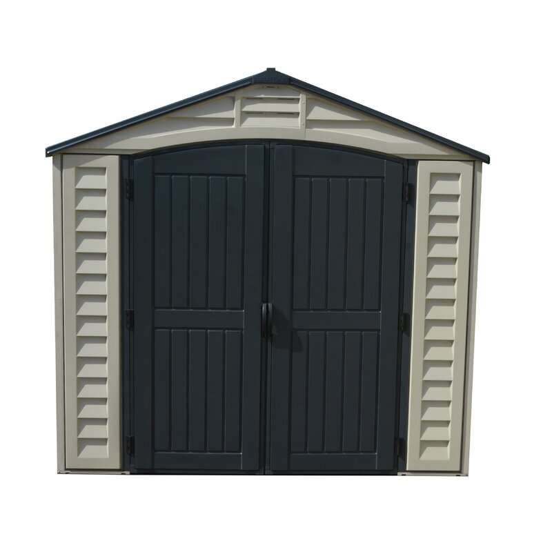 The Apex Pro is the latest line of quality sheds produced under the Duramax brand. US Polymers Inc.created the name Duramax to signify DURability and MAXimum quality and value. The Apex Pro has large double entry and double side doors. This provides storage accesibility from either side of the shed, insuring maximum utilization of storage and is easier to acquire the stored equipment. The Apex Pro was attractively designed to add beauty and blend into any yard area. The Apex Pro is maintenance free. It never needs painting and won't rust, rot or dent and is impervious to wood eating insects This shed has two creatively designed skylights on the roof and two front windows for light control and has four slotted vents for air flow.The Apex Pro has more of the physical characteristics of a house than a shed. The fire retardant vinyl resin panels are supported by Heavy Duty interior galvanized steel columns, beams and trusses for strength and roof snow load. Vinyl unlike polyethylene is fire retardant and safe to store all your flammable items. The 15 years warranty supports our guarantee of quality and longevity. It has a step by step instruction manual to simplify assembly. We suggest two people to facilitate assembly.