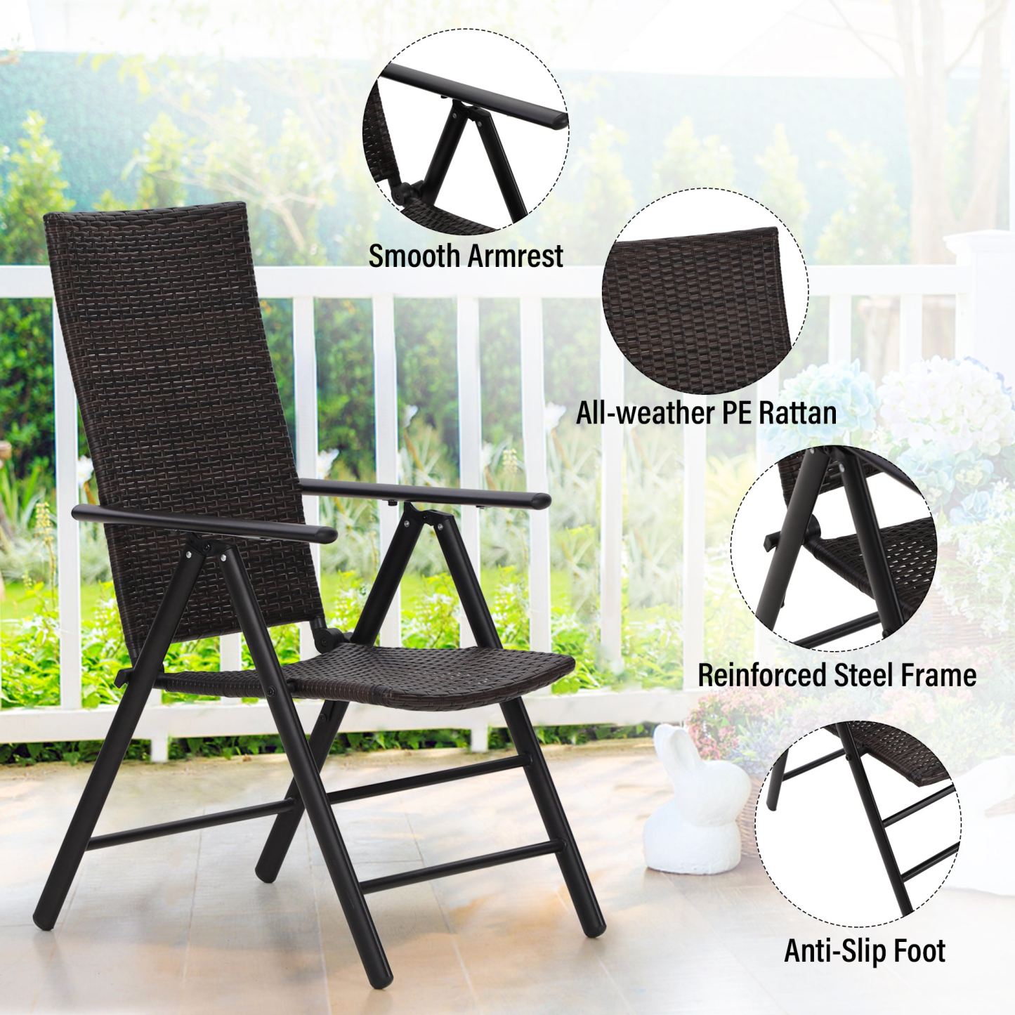Folding Rattan Dining Chair Aluminum & Steel Frame Set of 2