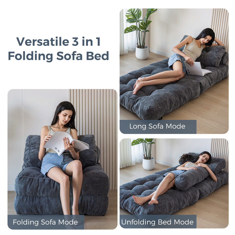 Crafted from premium corded fabric, this material offers a unique visual and tactile experience, elevating the ambiance of your living space. The size of the folding sofa bed is about 33.5"x74.8", which would be tailored to provide comfortable seating or bed for one person.