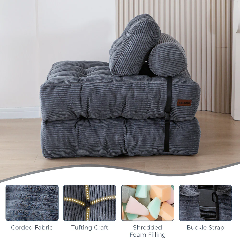 MAXYOYO Bean Bag Tufted Folding Sofa Bed with Pillows is perfect for seating and sleeping, this versatile piece suits bedrooms, living rooms, and small spaces. Its stylish tufted design adds elegance to any decor. Filled with high-density foam, it offers superior comfort and support. The included pillows enhance your lounging experience. The foldable design easily converts from sofa to bed, providing extra sleeping space.