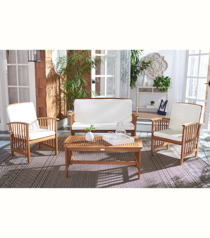 Safavieh 4pc Rocklin Naturel & Beige Outdoor Furniture Set