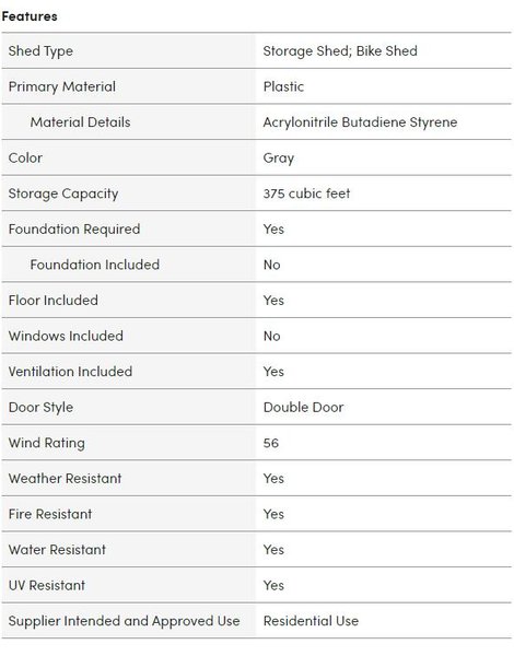 - Shed Type: Storage Shed; Bike Shed
